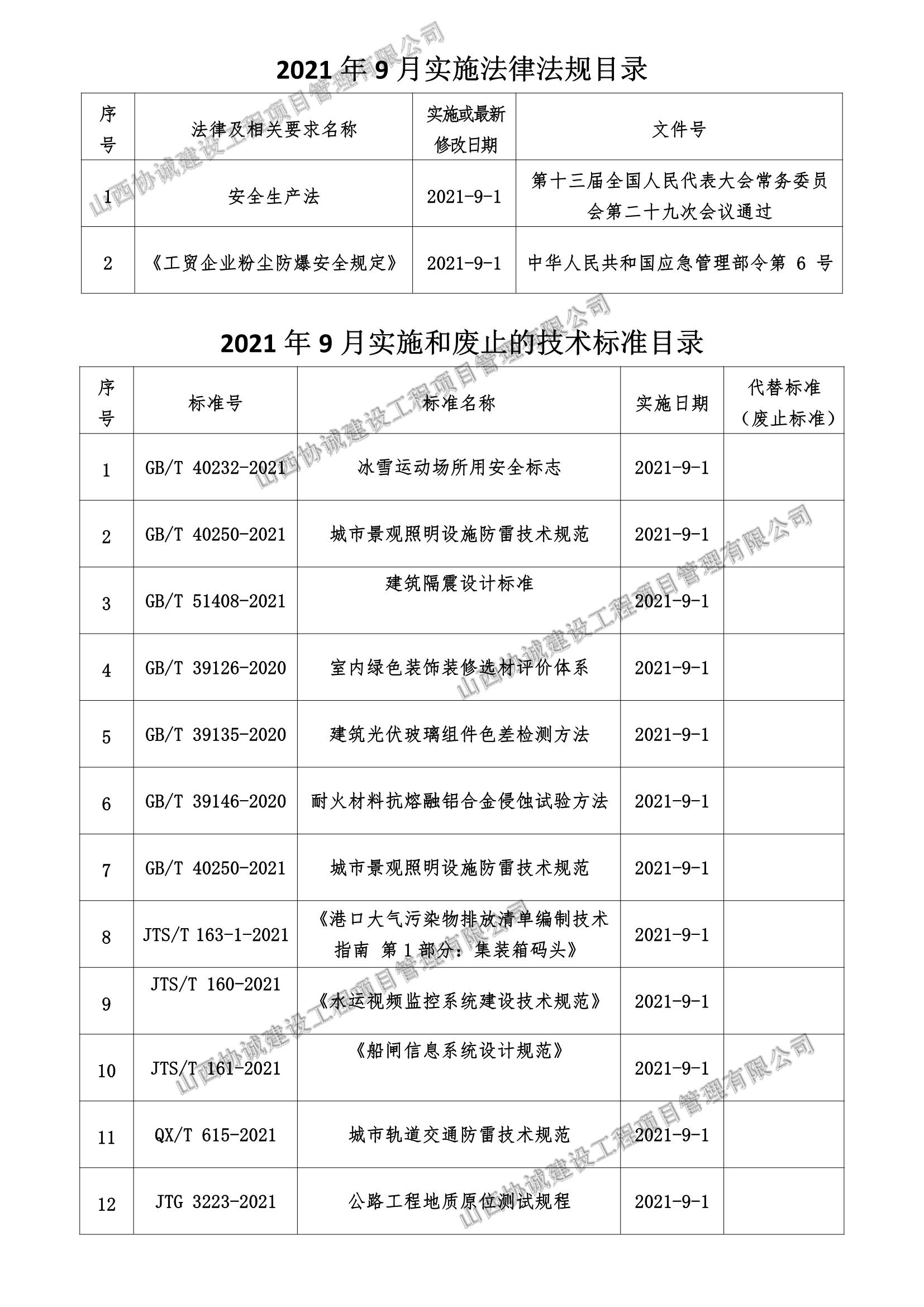2021年9月份實(shí)施和廢止法律法規(guī)、標(biāo)準(zhǔn)目錄