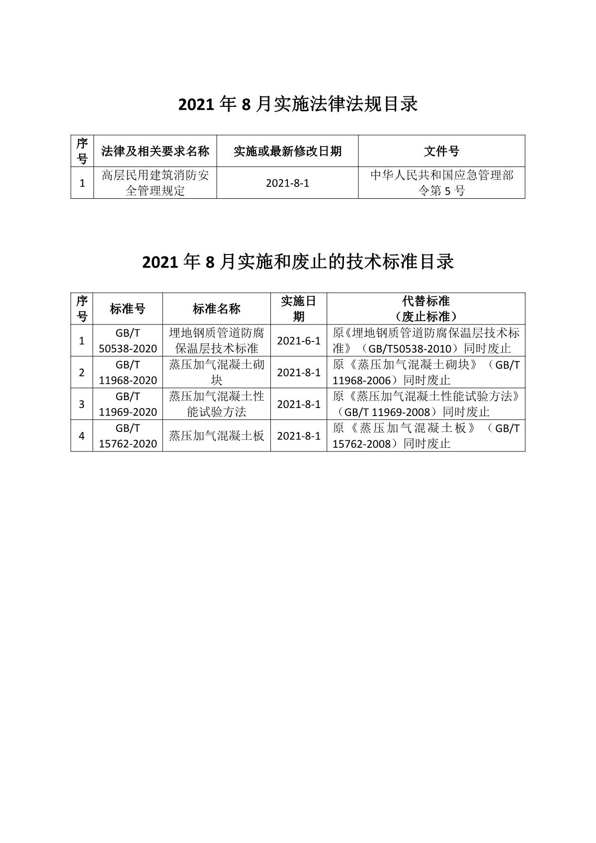 2021年8月份實施和廢止法律法規(guī)、標準目錄