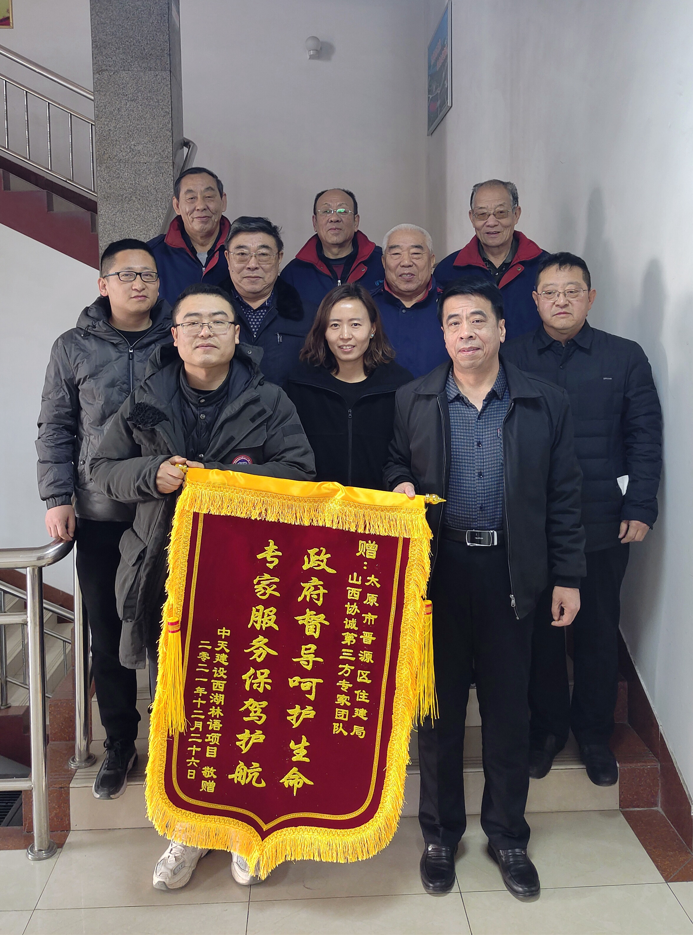 1、為感謝公司太原市晉源區(qū)政府第三方服務(wù)專家組對安全隱患整改工作的幫助,12月27日,中天建設(shè)西湖林語項(xiàng)目方,向公司派出的專家組贈予錦旗一面。