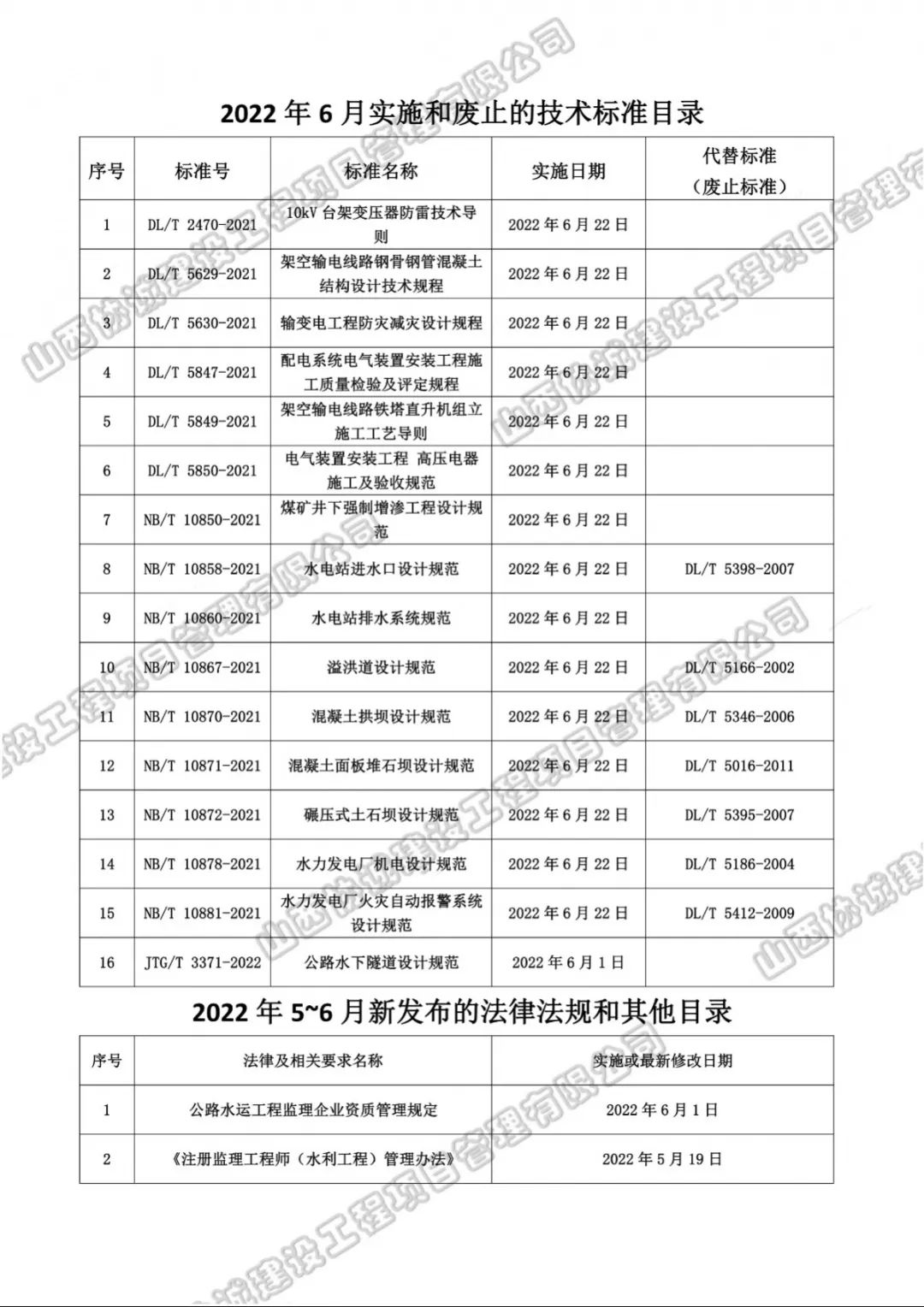 2022年6月實施和廢止的法律法規(guī)、標準規(guī)范目錄如下,請大家根據(jù)工程實際需要積極學習落實相關(guān)新標準。
