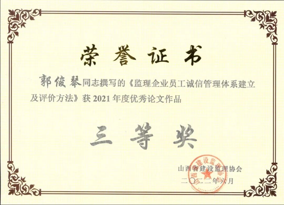 喜訊 6月28日,山西省建設(shè)監(jiān)理協(xié)會2021年度通聯(lián)工作大會隆重召開。會議由山西省建設(shè)監(jiān)理協(xié)會陳敏副會長主持,蘇鎖成會長等相關(guān)領(lǐng)導(dǎo)出席會議。我公司總經(jīng)理兼山西省建設(shè)監(jiān)理協(xié)會副會長劉景林、總經(jīng)理助理兼山西省建設(shè)監(jiān)理協(xié)會“兩委”成員張登記、通聯(lián)員石超參加了會議。 會上,孟慧業(yè)副會長做了《堅持創(chuàng)新驅(qū)動 提高通聯(lián)效能 為推進全省監(jiān)理行業(yè)創(chuàng)新發(fā)展發(fā)揮重要作用》的工作報告。蘇鎖成會長就通聯(lián)宣傳工作為行業(yè)發(fā)展提供正確輿論導(dǎo)向、發(fā)揮通聯(lián)工作在行業(yè)創(chuàng)新發(fā)展中的作用、注重理論研究轉(zhuǎn)化成果及加強工作改進創(chuàng)新等四個方面做了重要講話。大會還組織進行了有關(guān)工作交流。 會上,省監(jiān)理協(xié)會宣讀了《關(guān)于對“2021年度通聯(lián)工作標(biāo)兵單位”等獎項的通報》、《關(guān)于對2021年度在《建設(shè)監(jiān)理》國家三刊物發(fā)表論文作者獎勵的決定》、《關(guān)于對2021年度山西監(jiān)理百篇優(yōu)秀論文表揚的決定》、《關(guān)于獎勵“信通杯”全國監(jiān)理論文大賽山西獲獎?wù)撐淖髡叩耐▓蟆?、《關(guān)于獎勵中監(jiān)協(xié)監(jiān)理行業(yè)創(chuàng)新發(fā)展經(jīng)驗交流論文大賽山西獲標(biāo)★論文作者的通報》、《關(guān)于表揚“慶建黨百年華誕 展時代監(jiān)理風(fēng)采”活動中表現(xiàn)突出會員單位的通報》、《關(guān)于表揚“抗疫救災(zāi) 暖心守護”大愛中無私奉獻會員單位的通報》、《關(guān)于對2021年度通聯(lián)工作通報表揚的情況說明》。我公司集體和有關(guān)個人喜獲多項榮譽: 1、公司榮獲“2021年度通聯(lián)工作標(biāo)兵單位”; 2、公司榮獲“2021年度監(jiān)理理論研究標(biāo)兵單位”; 3、公司榮獲“信通杯”第四屆全國建設(shè)監(jiān)理論文大賽優(yōu)秀組織獎; 4、公司榮獲“‘慶建黨百年華誕 展時代監(jiān)理風(fēng)采’活動表現(xiàn)突出單位”; 5、公司榮獲“2021年度監(jiān)理企業(yè)優(yōu)秀內(nèi)刊金頁獎”; 6、公司榮獲“2021年度監(jiān)理企業(yè)微信平臺建設(shè)優(yōu)秀單位”; 7、公司榮獲“2021年度監(jiān)理企業(yè)優(yōu)秀網(wǎng)站單位”; 8、張登記、平利、馮長青被評為“2021年度監(jiān)理理論研究優(yōu)秀個人”; 9、韓麗、喬亞男、劉巖被評為“2021年度監(jiān)理理論研究先進個人”; 10、石超被評為“2021年度優(yōu)秀通聯(lián)員”; 11、經(jīng)省監(jiān)理協(xié)會組織評審,公司有10篇論文被評為“2021年度山西監(jiān)理百篇優(yōu)秀論文”,其中,王海波、劉景林撰寫的論文被評為一等獎;王雅蓉、馮長青、韓華撰寫的論文被評為二等獎;郭俊琴、田晶、喬亞男、馮云青、白皓撰寫的論文被評為三等獎。 12、公司有21篇論文在2021年度《建設(shè)監(jiān)理》等國家三刊物、“信通杯”全國監(jiān)理論文大賽、中監(jiān)協(xié)監(jiān)理行業(yè)創(chuàng)新發(fā)展經(jīng)驗交流論文大賽獲獎的基礎(chǔ)上,論文作者受到省監(jiān)理協(xié)會的以資再獎。 公司和有關(guān)人員獲得的上述榮譽是省監(jiān)理協(xié)會對我公司通聯(lián)工作的充分肯定和鼓勵,特別是在監(jiān)理理論研究及論文發(fā)布方面,2021年公司在數(shù)量和質(zhì)量上獲得“雙豐收”!其中,張登記撰寫的《論監(jiān)理企業(yè)的總體風(fēng)險防控管理》,在“信通杯”全國監(jiān)理論文大賽中被評為大賽僅有的兩篇、山西唯一的一篇一等獎,平利、馮長青撰寫的論文分獲大賽三等獎和優(yōu)勝獎,公司獲得組織獎,為省監(jiān)理行業(yè)和公司爭得了榮譽。新的一年,我公司將繼續(xù)發(fā)揚成績,不斷創(chuàng)新工作,進一步加強監(jiān)理工作理論和業(yè)務(wù)實踐的研究探索,大力弘揚和努力打造現(xiàn)代企業(yè)文化,認(rèn)真履行通聯(lián)工作職責(zé),為合力開創(chuàng)我省監(jiān)理行業(yè)通聯(lián)工作新局面做出應(yīng)有的貢獻。
