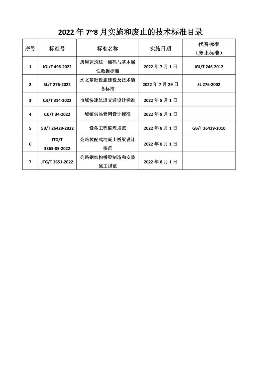 2022年7~8月實施和廢止的法律法規(guī)、標準規(guī)范目錄如下,請大家根據(jù)工程實際需要積極學習落實相關新標準。