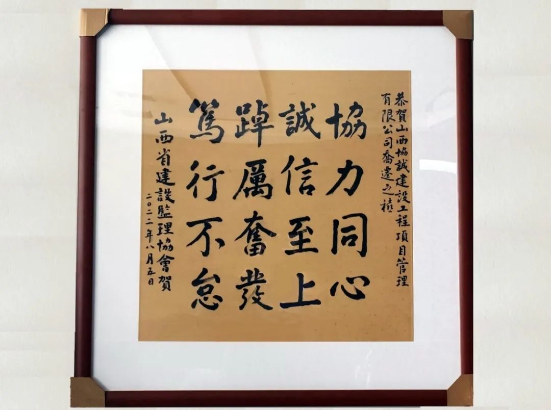 8月5日,山西省建設(shè)監(jiān)理協(xié)會(huì)原會(huì)長唐桂蓮、會(huì)長蘇鎖成、副會(huì)長陳敏、孟慧業(yè)等一行16人到喬遷后的公司新址調(diào)研。公司榮譽(yù)董事長高保慶、董事長王海波、總經(jīng)理劉景林等公司領(lǐng)導(dǎo)與省協(xié)會(huì)領(lǐng)導(dǎo)進(jìn)行了座談。座談會(huì)上,省協(xié)會(huì)向公司贈(zèng)送了內(nèi)容為“協(xié)力同心,誠信至上,踔厲奮發(fā),篤行不怠”的墨寶一幅,以賀喬遷之喜。座談會(huì)后,省協(xié)會(huì)領(lǐng)導(dǎo)與公司領(lǐng)導(dǎo)合影留念。