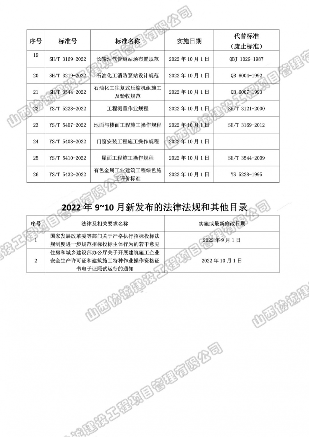 2022年10月實(shí)施和廢止的標(biāo)準(zhǔn)規(guī)范、2022年9~10月實(shí)施和廢止的法律法規(guī)目錄如下,請(qǐng)大家根據(jù)工程實(shí)際需要積極學(xué)習(xí)落實(shí)相關(guān)新標(biāo)準(zhǔn)。