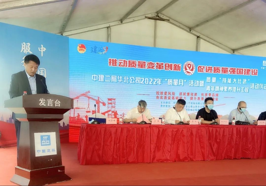 4、9月15日,中建二局華北公司在山西綜改示范區(qū)標(biāo)注配套產(chǎn)業(yè)園項(xiàng)目現(xiàn)場(chǎng),舉行2022年“質(zhì)量月”活動(dòng)。作為項(xiàng)目工程參建方,公司黨委書(shū)記、總經(jīng)理劉景林應(yīng)邀出席活動(dòng)并做了講話(huà),同時(shí)觀(guān)摩了中建二局華北公司舉辦的“技能大比武”。
