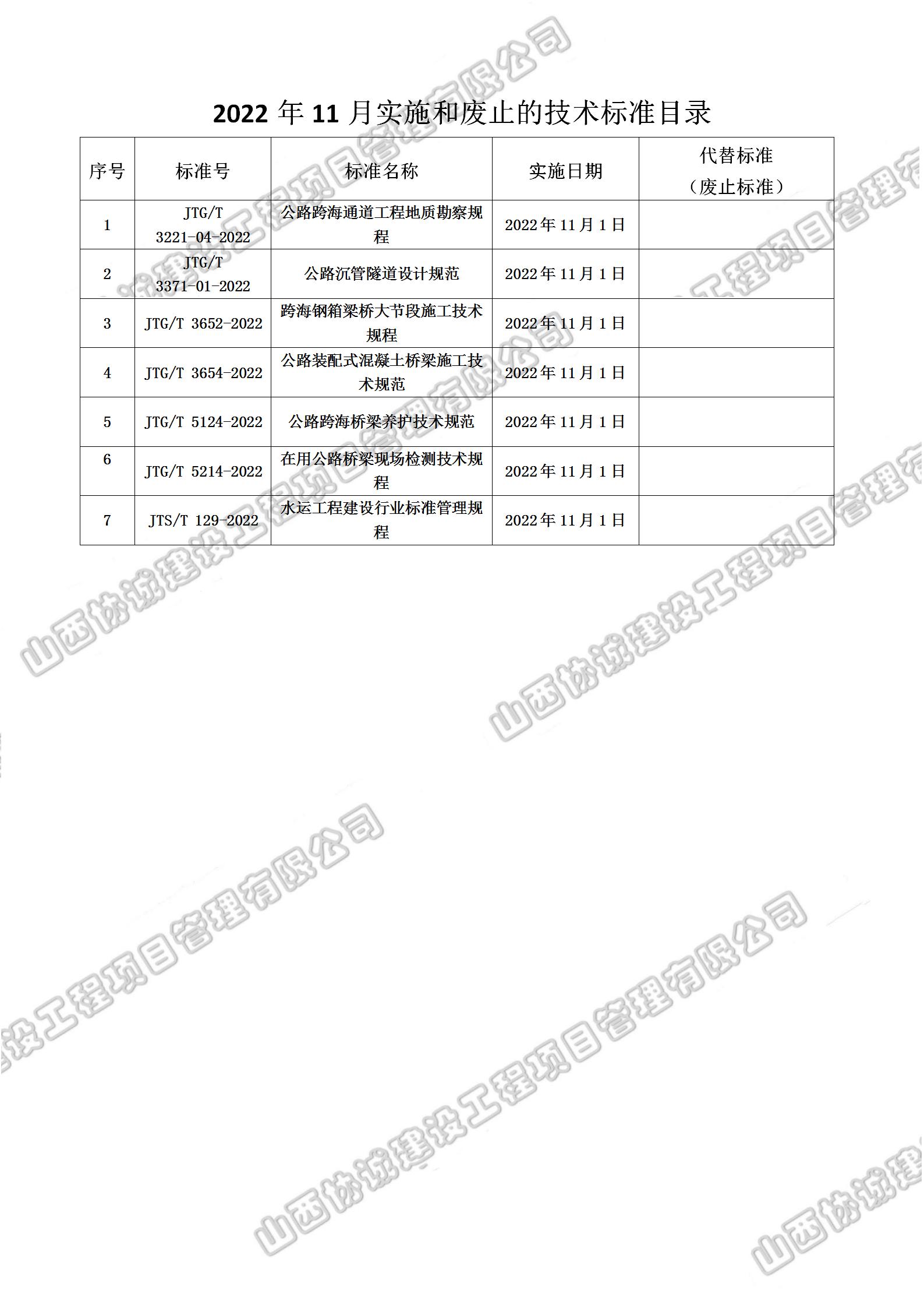 2022年11月實(shí)施和廢止的技術(shù)標(biāo)準(zhǔn)目錄