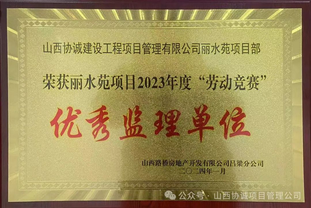 1、近日,公司被山西陽城縣住建局授予“監(jiān)理工作突出貢獻(xiàn)先進(jìn)集體”;方山縣大武鎮(zhèn)麗水苑項目部榮獲山西路橋房地產(chǎn)開發(fā)有限公司呂梁分公司授予的“麗水苑項目2023年‘勞動競賽’優(yōu)秀監(jiān)理單位”。