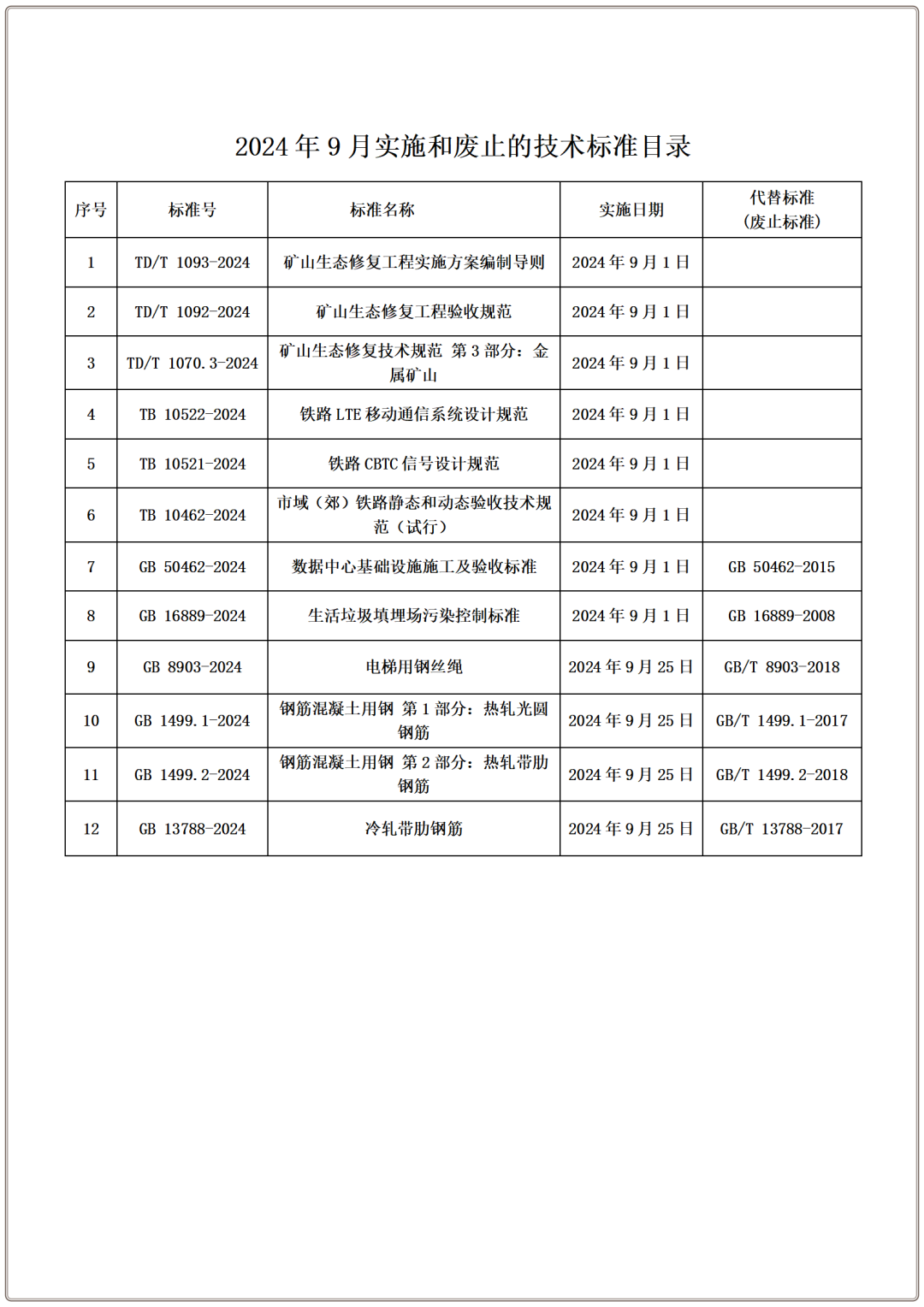 2024年9月實(shí)施和廢止的標(biāo)準(zhǔn)規(guī)范目錄如下,請大家根據(jù)工程實(shí)際需要積極學(xué)習(xí)落實(shí)相關(guān)新標(biāo)準(zhǔn)。