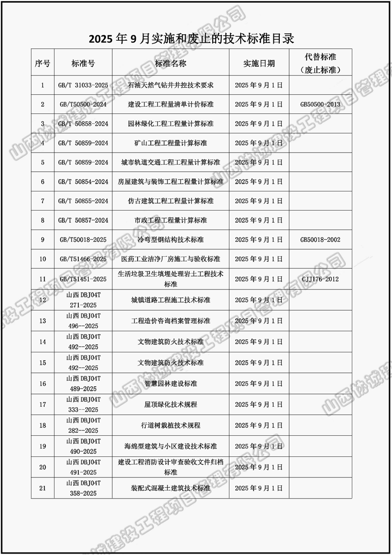 2025年9月實(shí)施和廢止的法律法規(guī)、標(biāo)準(zhǔn)規(guī)范目錄如下,請(qǐng)大家根據(jù)工程實(shí)際需要積極學(xué)習(xí)落實(shí)相關(guān)新標(biāo)準(zhǔn)。